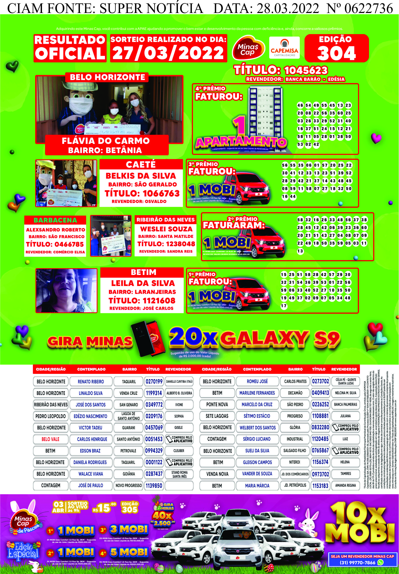 Sorteio realizado no dia: 27/03/2022.